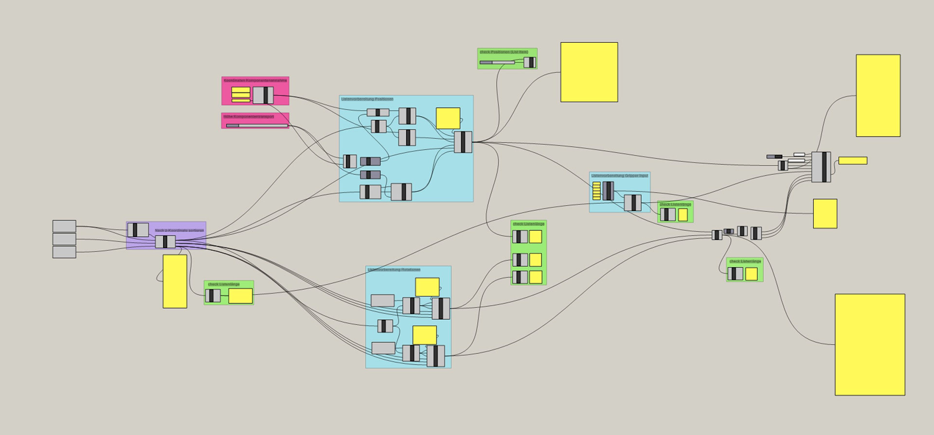 After a long development process we came up with a square brick that operates with a slot and key system. To get more diversity we startet to transform the component in a repetitive way so the general dimensions stay compatible. To achieve the wanted precision we used MDF Wood und CNC milling. The UR Robot allowed us to use image recognition to assemble our aggregation. Therfore the robot can decide on its own which component he grabs.